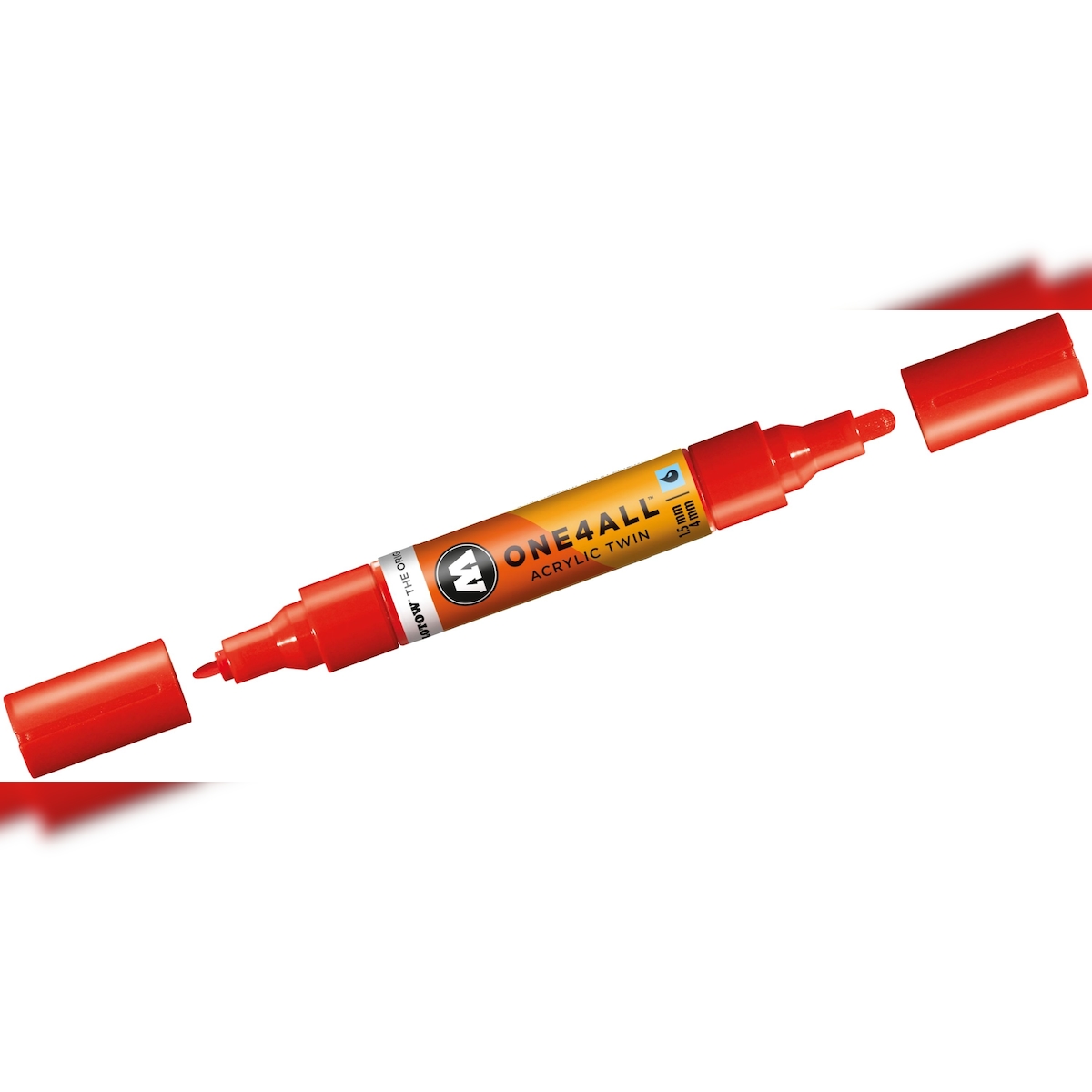 MOLOTOW Permanentmarker One4All Acrylic Twin nachfüllbar 1,5 und 4mm verkehrsrot Packung mit 3 Stück