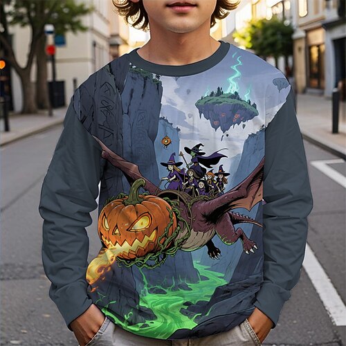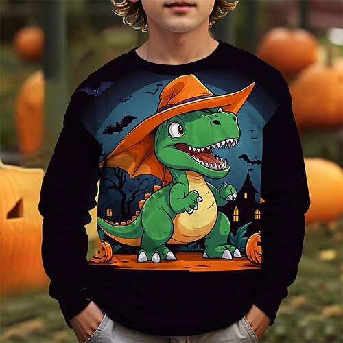 Halloween Jungen 3D Kürbis Dinosaurier T-Shirt Langarm Frühling Herbst Mode Basic Kinder 4-12 Jahre Rundhalsausschnitt Outdoor Lässig Täglich Normale Passform