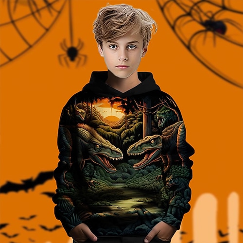 Halloween Jungen 3D Dinosaurier Kapuzensweatshirt Langarm Frühling Herbst Mode Streetwear Kinder 4-12 Jahre Mit Kapuze Outdoor Lässig Täglich Normale Passform