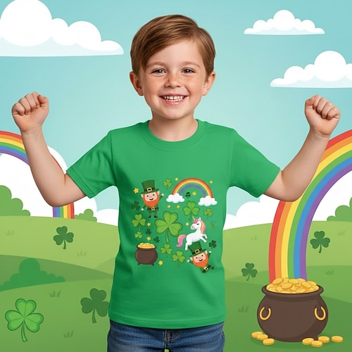 St. Patrick's Day Jungen 3D Regenbogen St. Patricks Day T-Shirt Kurzarm 3D-Druck Sommer Frühling Sport Mode Streetwear Kinder 4-12 Jahre Rundhalsausschnitt Lässig Täglich Outdoor Normale Passform