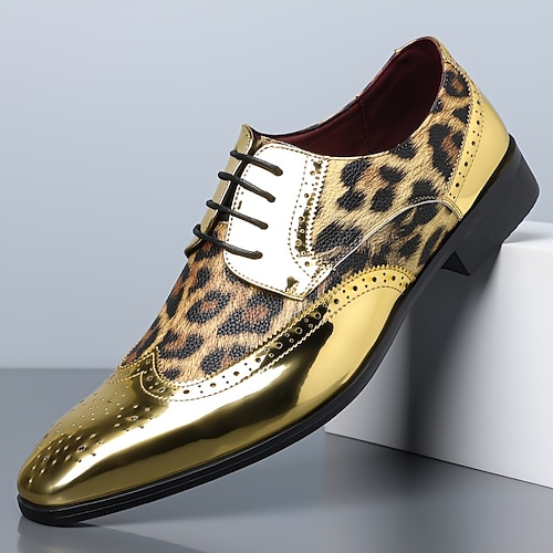 scarpe eleganti da uomo con lacci e stampa leopardata, scarpe formali audaci ed eleganti, ideali per feste, matrimoni ed eventi alla moda, calzature comode e alla moda