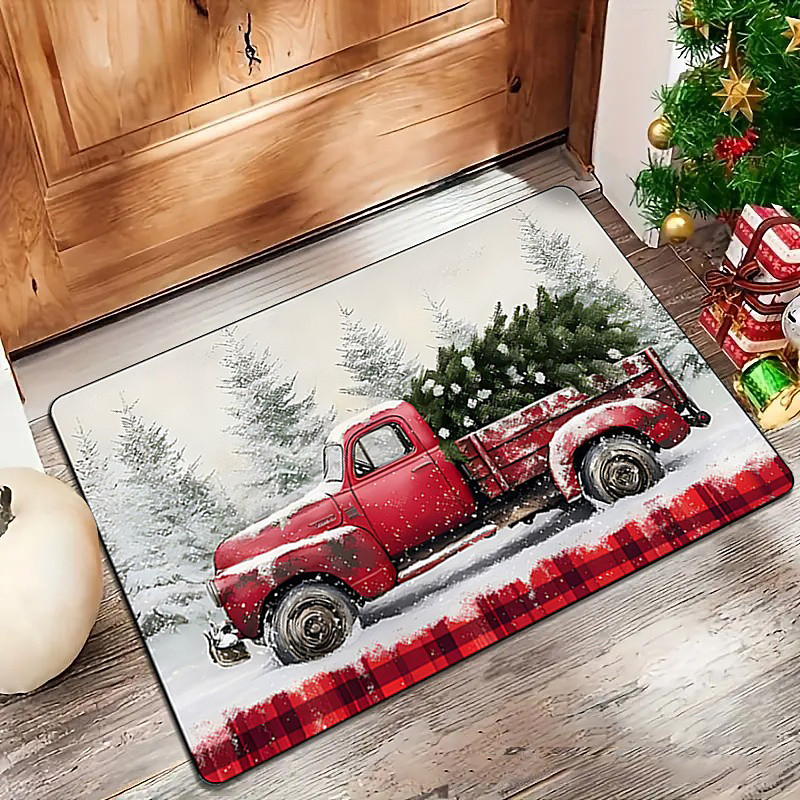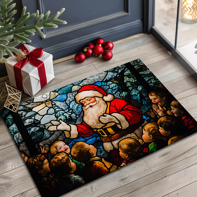 Christmas Decoration Doormat Xmas Santa Gifts Kitchen Mat Floor Mat Non-Slip Area Rug Oil Proof Rug Indoor Outdoor Mat Bedroom Decor Bathroom Mat Entrance Rug