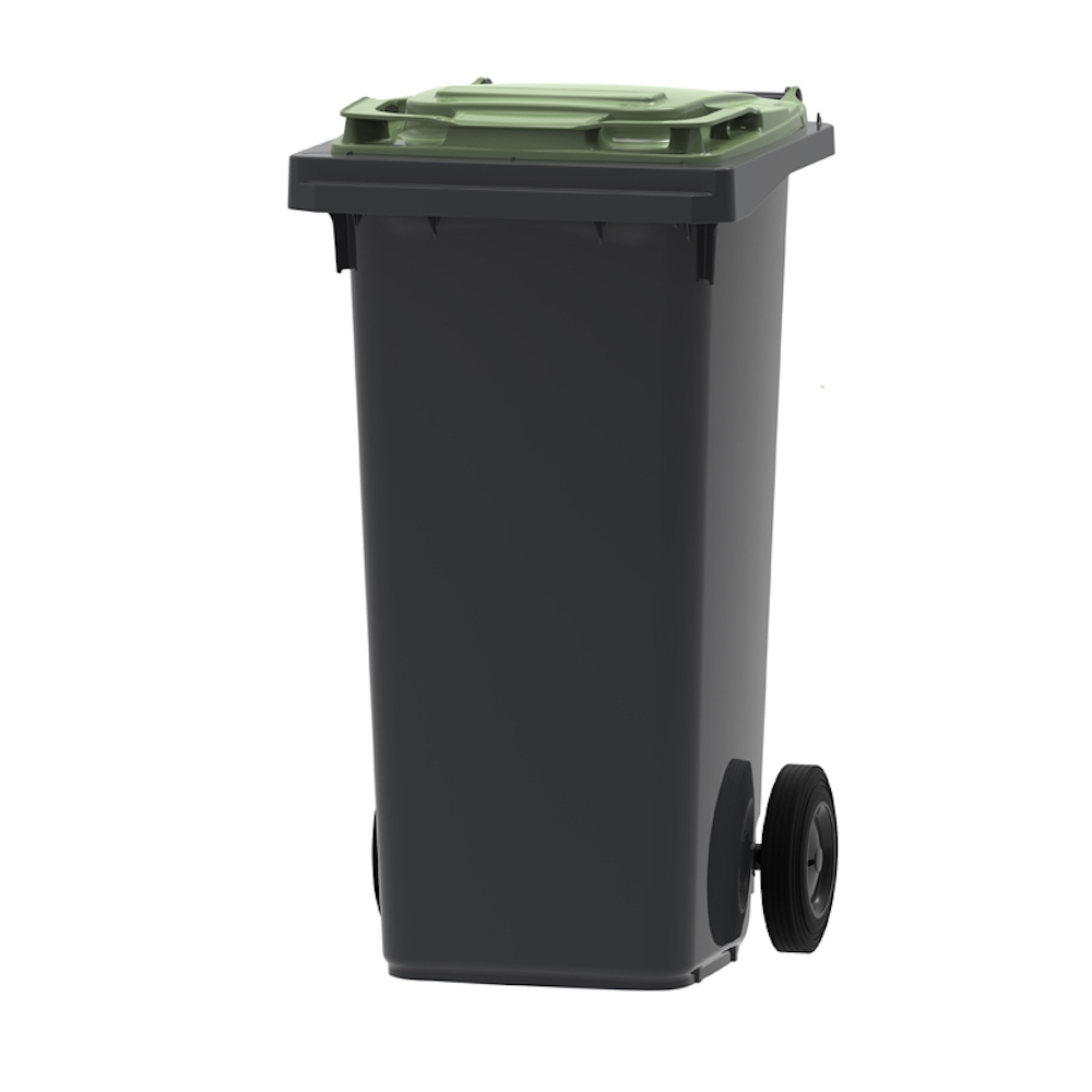 PROREGAL Premium 2-Rad-Mülltonne MGB | 120 Liter, HxBxT 97,4x47,9x55,5cm | HDPE-Kunststoff | Grau, Deckel Grün