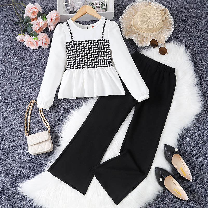 Kids Girls' Plaid Crewneck Pants Suit Set Long Sleeve Adorable Outdoor Cotton 7-13 Years Winter Black / Fall