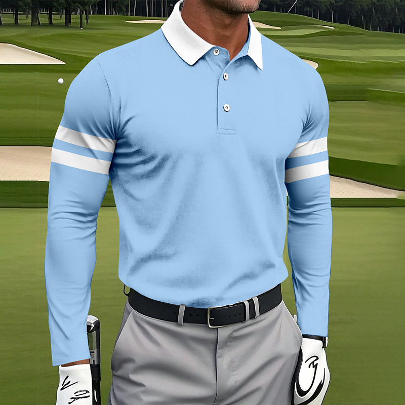 Men's Stripes Polo Sports Polo Shirts Long Sleeve Polo Shirts Collared Shirts Sportswear Athleisure Daily Wear 3D Print Spring Fall Winter Navy Blue Light Brown Sky Blue