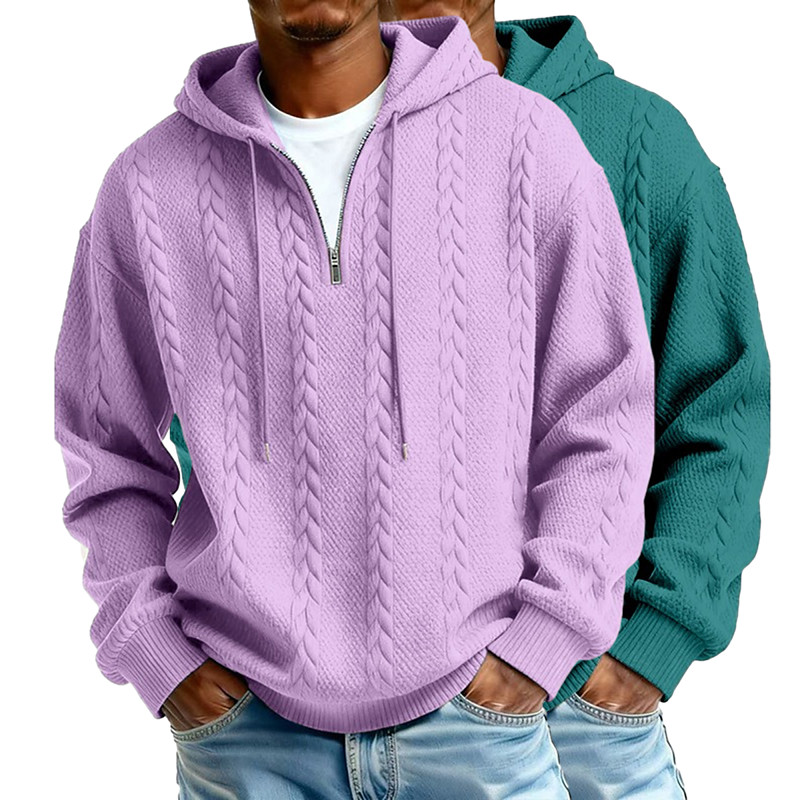 Men's Jacquard Hoodie Quarter Zip Hoodie ApricotGray Light BlueBlack WhiteLight Gray Light GreenNavy Blue Light BluePurple Hooded Plain Textured Casual Daily Sports Outdoor Streetwear Cool