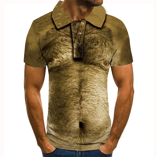Herren Grafik Cosplay Poloshirts Golfshirt Kurzarm Polo-Shirts Hemden mit Kragen Lässig Urlaubskleidung Rave-Kleidung Party-Outfits Knöpfe 3D-Druck Gelb Braun