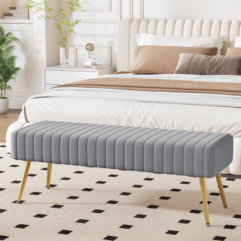 Ckaff Banc 113,5 cm pour Entrée/Chambre/Salle à Manger - Bout de Lit, Repose-Pieds, Banc Capitonné/Coiffeuse/Chaussures - Pieds Métal, Velours - Gris