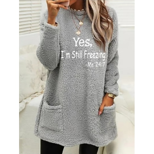 Per donna Felpa Pullover Lettera Casual Manica Lunga Girocollo Top lunghi Streetwear Abbigliamento Quotidiano Tasca Stampato Blu Nero Bianco Rosa Verde militare Autunno Inverno