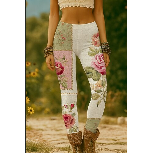 Per donna Leggings Abbigliamento da casa Vacanza Vintage Moda Lunghezza intera Vita Alta Floreale Grafico Stampa Calore Termico Morbido Traspirante Elasticizzato Formale All'aperto Vacanza Viola Rosa