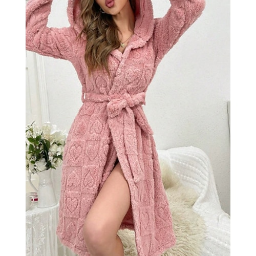 Per donna Pigiama Accappatoio Casual Colore Puro Allacciato Pantalone Casa Quotidiano Da letto Manica Lunga Felpa con Cappuccio Giallo Rosa Verde Grigio Autunno Inverno Vestibilità comoda
