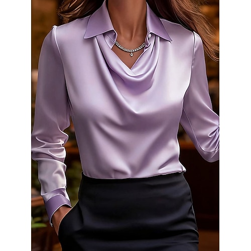 Per donna Blusa Top Eleganti Arricciato Patchwork Drappeggiato Semplice Elegante Signore Classico Manica Lunga Scollo a Cascata Top Regolari Quotidiano Lavoro Ferie Nero Bianco Champagne Giallo Rosa