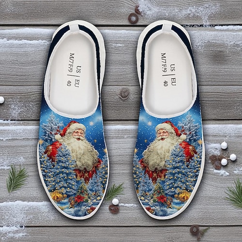 Weihnachtsschuhe für Herren mit Weihnachtsmann-Bier-Motiv – lustige, atmungsaktive Slip-on-Sneaker mit dem Aufdruck „Ho ho, halt mal mein Bier", lässige Festtagsschuhe für Partys und als Geschenk