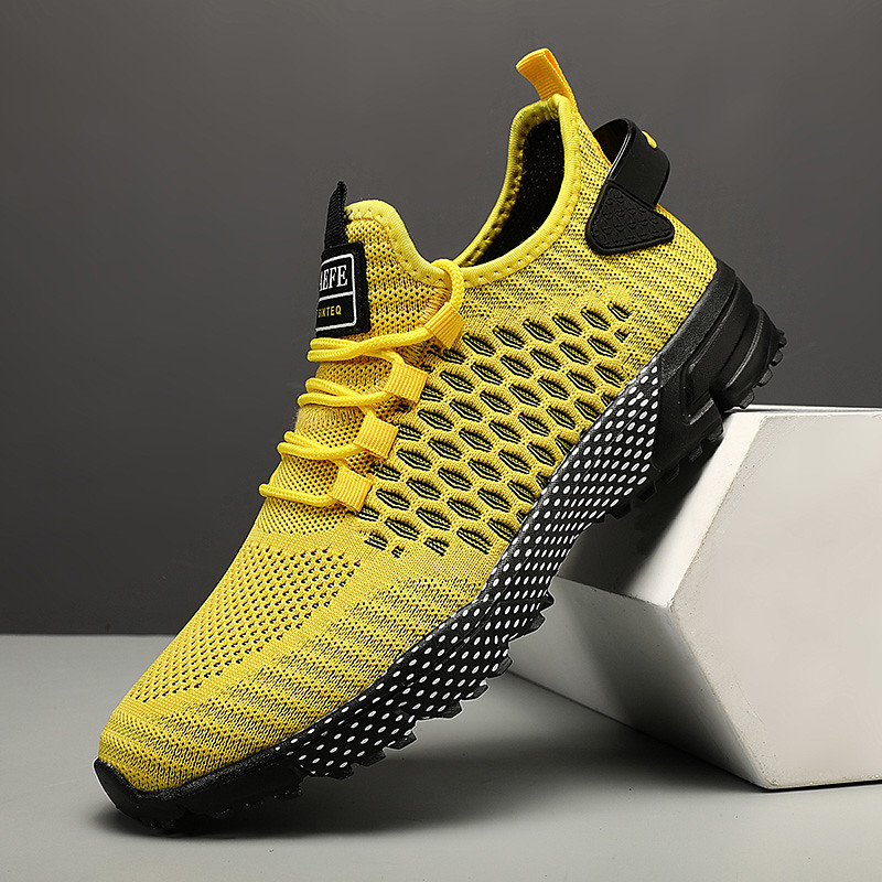 Men's Neon Green Breathable Athletic Sneakers – Lightweight Mesh Running Shoes with Cushioned Sole