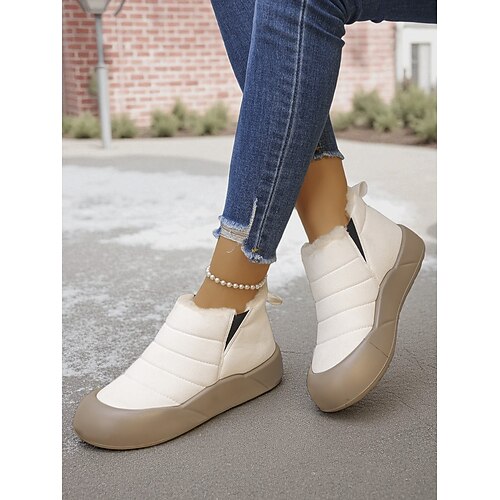Per donna Stivali Stivali da Neve All'aperto Quotidiano Tinta unica Foderato in Pile Tronchetti Tacco basso Punta Tonda Casual Comfort Pelliccia Sintetica Cerniera Nero Bianco Rosa