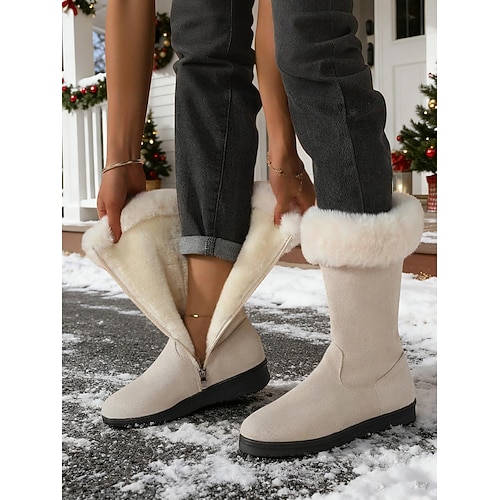 stivali da neve invernali caldi da donna con fodera in pelliccia sintetica e cerniera laterale, stivaletti antiscivolo impermeabili per l'uso all'aperto