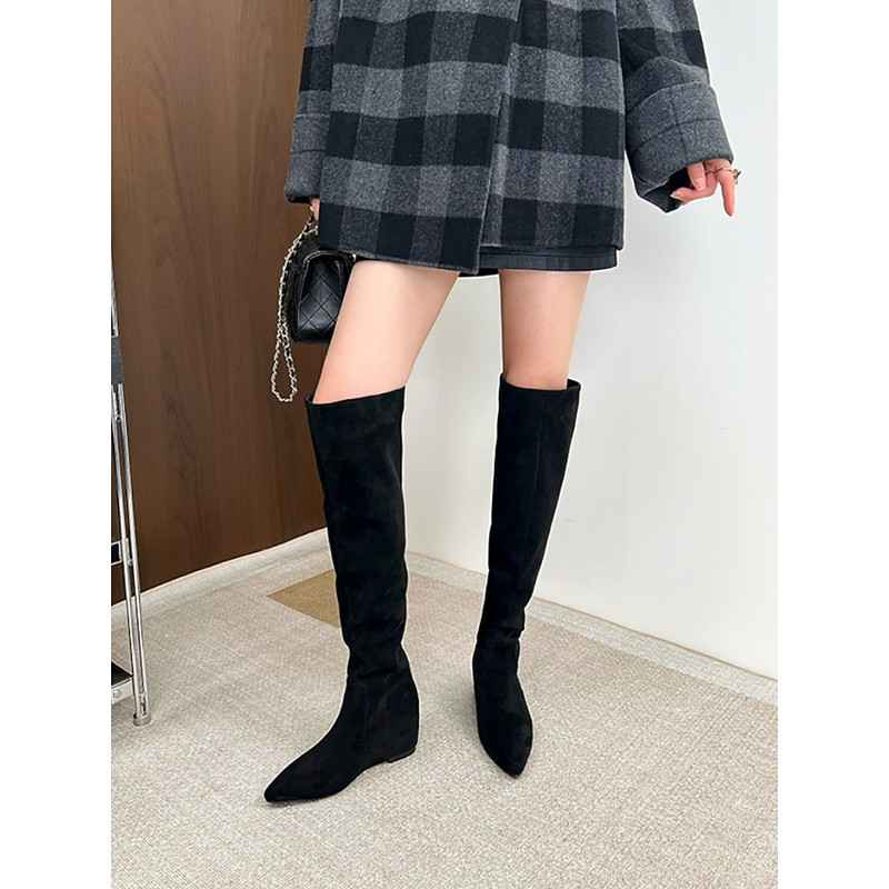 Women's Suede Knee-High Boots, Pointed Toe, Fashionable Heeled Boots for Casual and Evening Wear