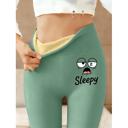 Per donna leggings foderati in pile Leggings Vacanza Vintage Stile Etnico Lunghezza intera Vita Alta Grafico Lettera Calore Termico Comodo Confortevole Elasticizzato All'aperto Vacanza Streetwear