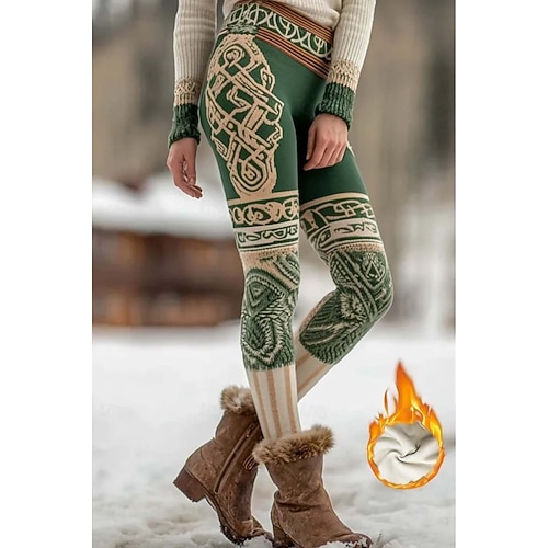 Leggings da donna Viking Boho foderati in pile vacanza stile etnico vintage a lunghezza intera vita alta patttern geometrico stampa 3D termico caldo antivento comodi elasticizzati casa quotidiana