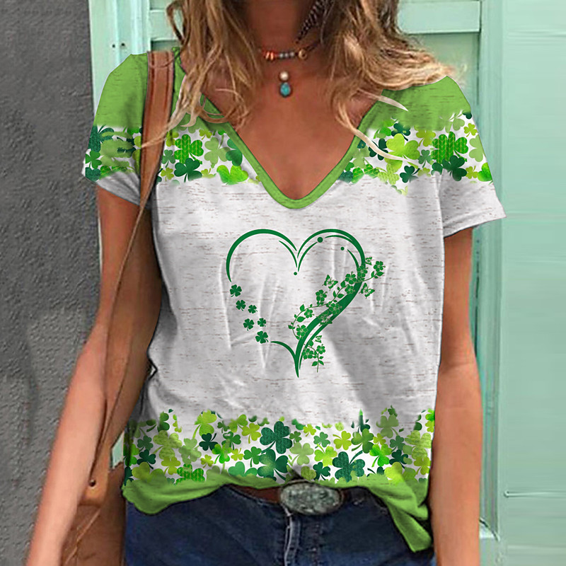 St. Paddy's Day St. Patrick's Day Women's T Shirt Heart Leaf St. Patrick's Day Short Sleeve V Neck Regular Tops Holiday Weekend Print Grass Green Light Green Army Green Green Jade