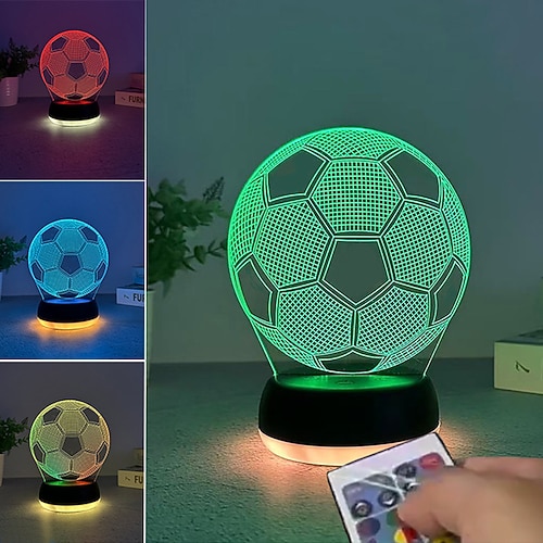 Acryl-3D-Fußball-Nachtlicht, Fußball-Design 2026, Touch-Steuerung, zweifarbig, dimmbar mit Timer, Fernbedienung, USB-Anschluss LED-Nachtlampe mit AAA-Batteriebetrieb für Schlafzimmer, Jungen,
