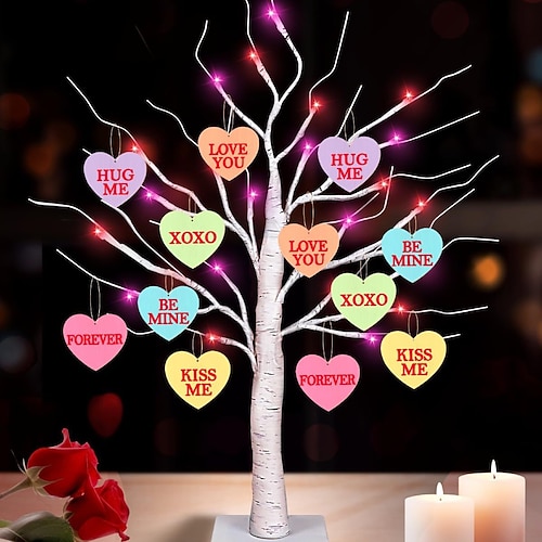 Decorazione per albero di betulla per San Valentino, festa della mamma, luci da 60 cm/24 pollici, batteria AAA, alimentazione USB, doppio scopo, regalo per fidanzata, amante, moglie, madre, camera da