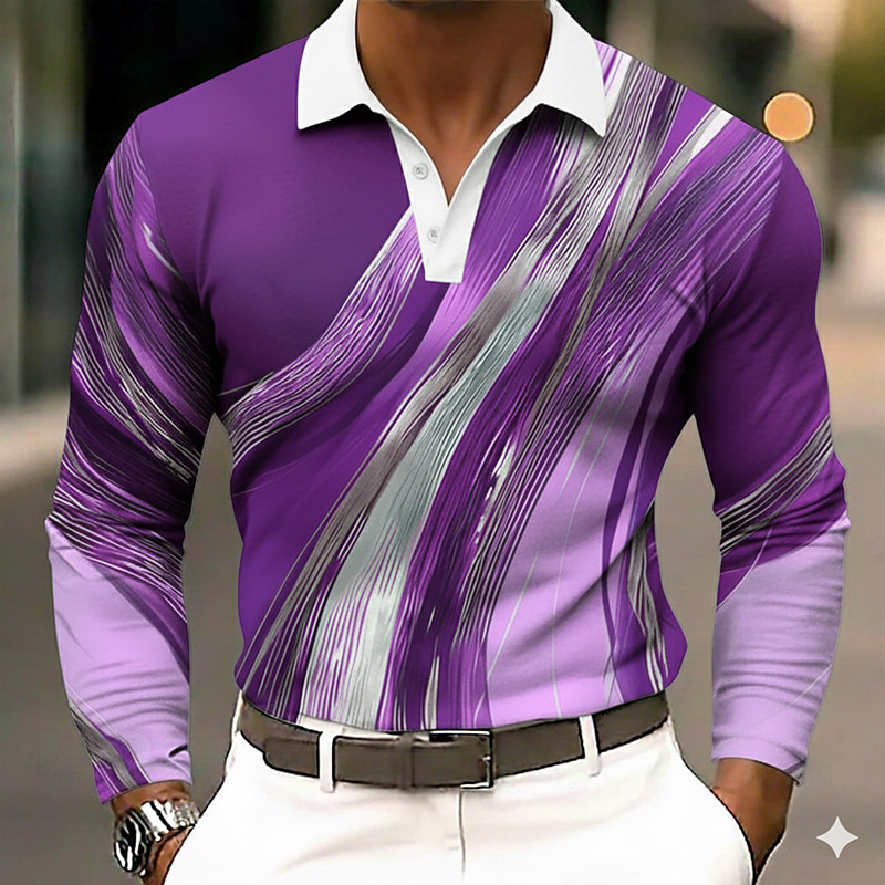 Men's Geometic Polo Shirts Long Sleeve Polo Shirts Lapel Business Casual Outdoor Street Athleisure Daily Wear 3D Print Buttons Spring Fall Blue Red Purple