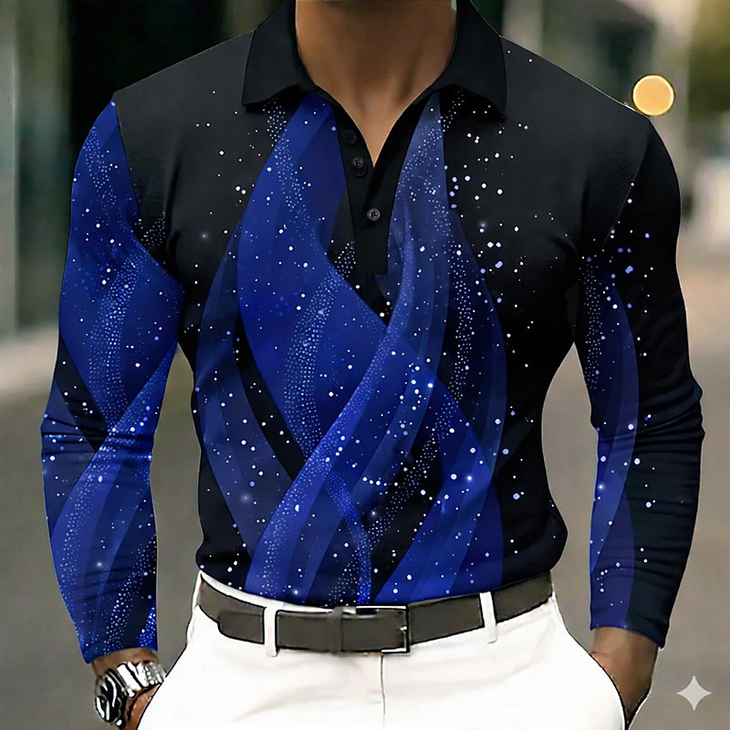 Men's Geometric Polo Long Sleeve Polo Shirts Lapel Casual Business Casual Athleisure Daily Wear Pocket 3D Print Buttons Spring Fall Lake blue Red Blue