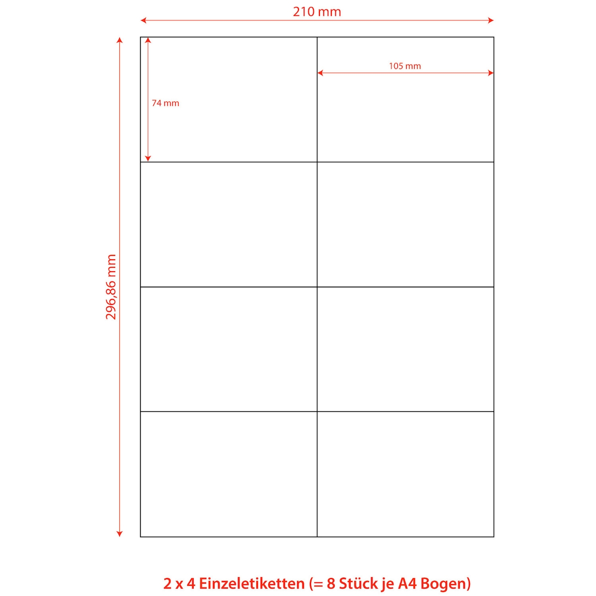 VEPATIM 800x Etiketten Labels selbstklebend weiß 105 x 74mm auf DIN A4