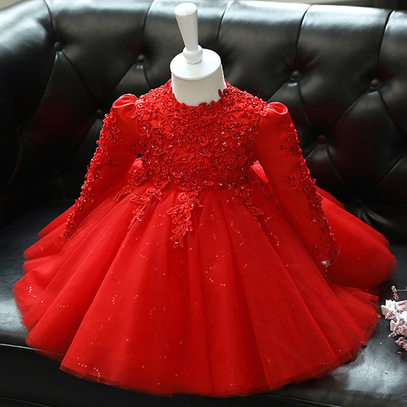 Kids Little Girls' Dress Solid Colored Flower A Line Dress Party Special Occasion Birthday Mesh Red White Maxi Long Sleeve Princess Sweet Dresses Fall Spring Regular Fit 3-12 Years