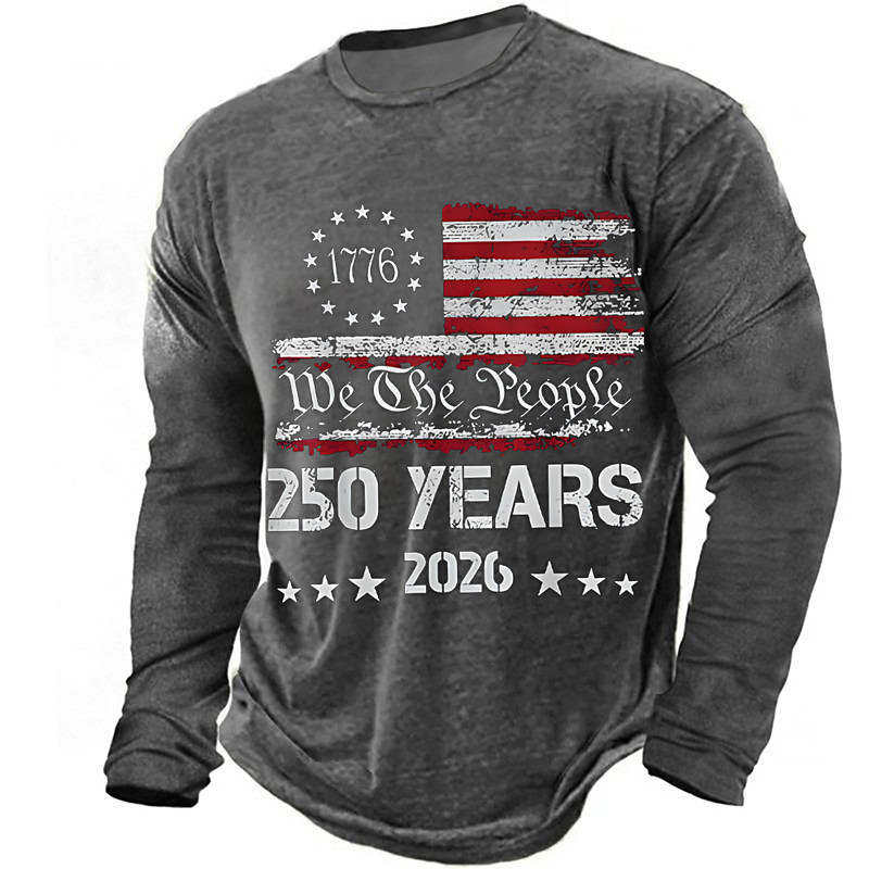 America's 250th Anniversary Men's America's 250th Anniversary T Shirt Long Sleeve T shirt 3D Print Crew Neck Shirt Daily Casual Daily Travel Party Blue Black Red Summer Spring Fall Clothing Apparel S
