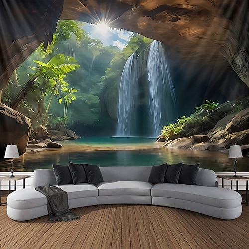 arazzo Coperta Arazzi da Parete Cascata 森林 Tropicale 3D Camera da letto Soggiorno Dormitorio Decorazioni Parete Porta Sfondo