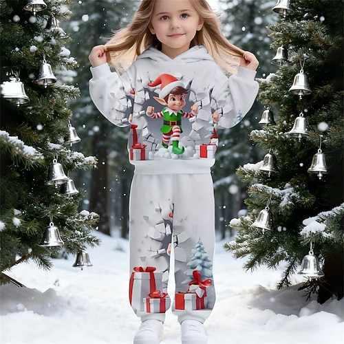 Natale San Patrizio Unisex Ragazze 3D Grafico Elfo di San Patrizio Set Felpa con cappuccio Pantaloni della tuta Tuta sportiva Tute da ginnastica Manica Lunga Stampa 3D Autunno Inverno Sport Moda