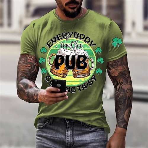 maglietta unisex da uomo per il giorno di San Patrizio stampa 3D stampe grafiche floreali giorno di San Patrizio girocollo casual stampa 3D quotidiana top a maniche corte moda classica abc /