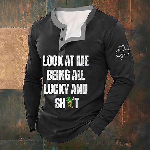 Giorno di San Patrizio San Patrizio Festa di San Patrizio Per uomo Trifoglio Citazioni Detti Maglietta Maglia Henley Manica Lunga maglietta Stampa 3D Henley Camicia Sport Moda Designer Quotidiano
