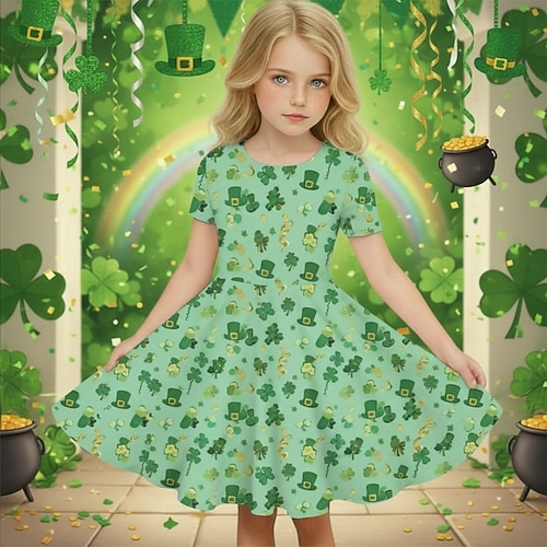 Giorno di San Patrizio ragazze' 3D Grafico Quadrifoglio Giorno di San Patrizio Abito Manica Corta Stampa 3D Estate Primavera Quotidiano Vacanza Feste Carino Essenziale Casual Bambini 4-12 Anni