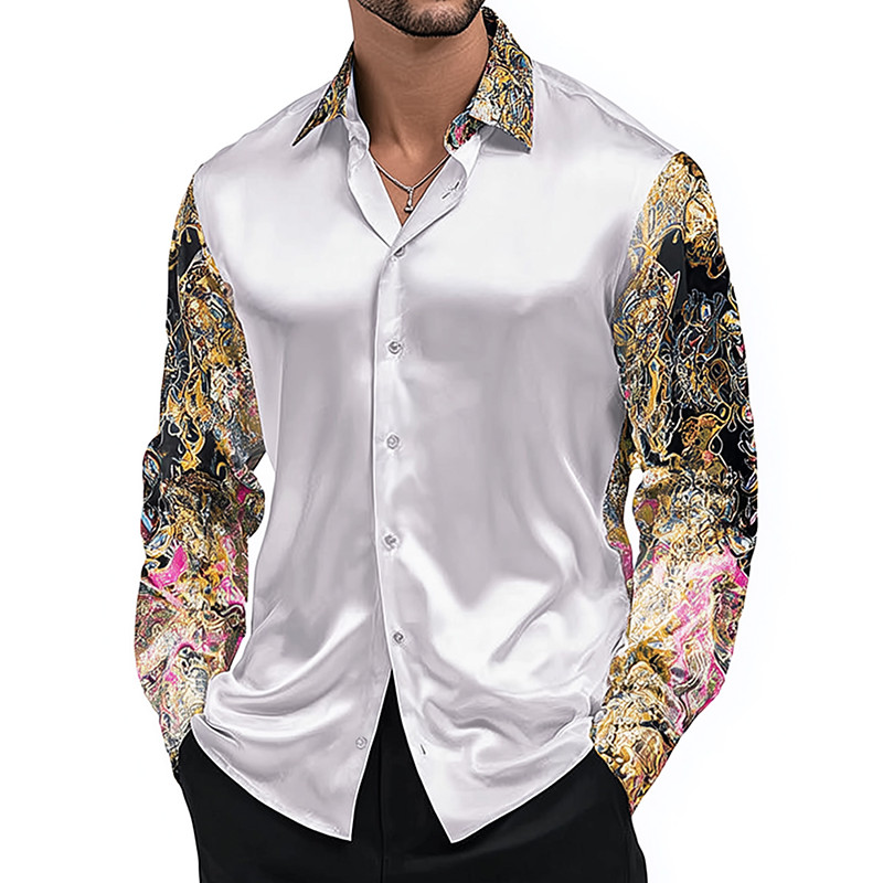 Men's Ethnic Intricate Floral Flowers Shirt Satin Shirt Dress Shirt Long Sleeve Vintage Retro Vacation Dailywear Summer Spring Fall Turndown 3D Print Button Up Shirts White 1 White White 2