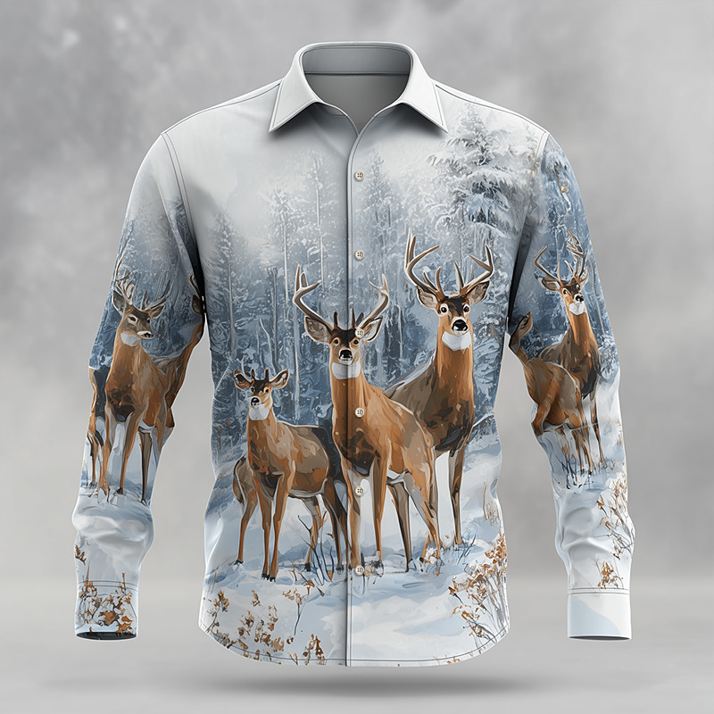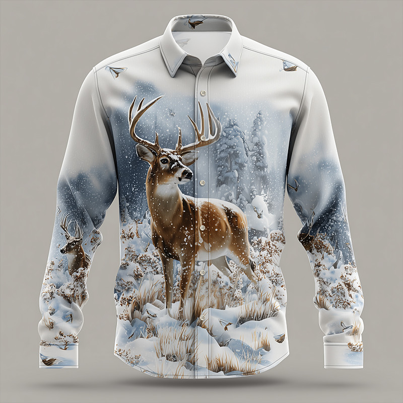 Men's Animal Reindeer Nature Landscapes Shirt Button Up Shirt Long Sleeve Vintage Retro Outdoor Casual Hunting Spring Fall Turndown 3D Print Collared Shirts White 1 White White 2
