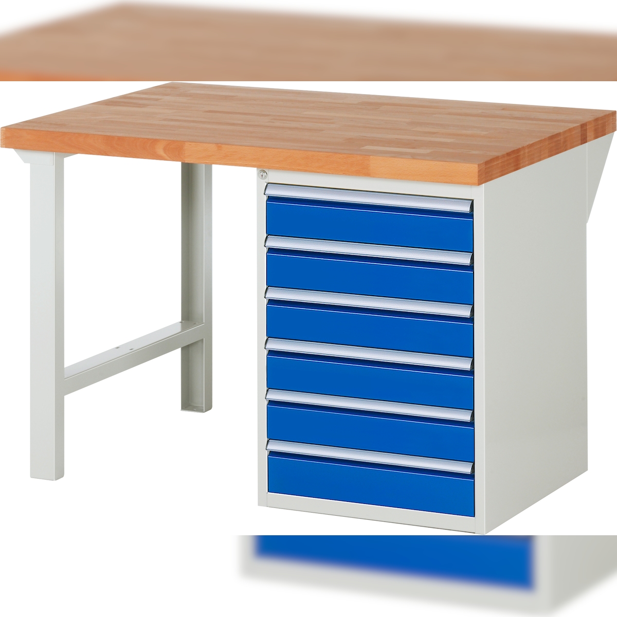 PROREGAL Werkbank Serie 7000 - Modell 7516 | HxBxT 84x125x90cm | 6x Schublade | Schubladenmaße 6x120mm | Lichtgrau | Arbeitstisch Werktisch