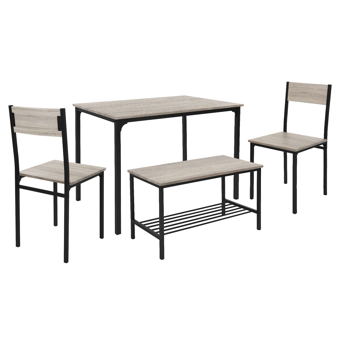 ML-Design Esstisch Set 4-tlg., Eiche-Grau, Tisch mit 2 Stühlen & 1 Bank, Essgruppe für 4 Personen, Küchentisch mit Metallrahmen, Bartisch Set,