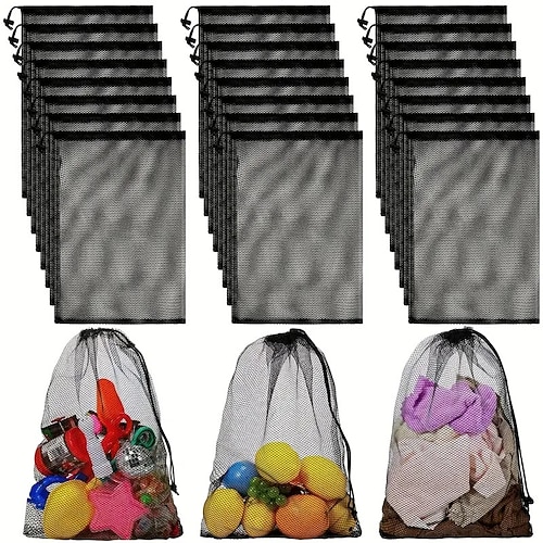 6er-Pack strapazierfähige Nylon-Netzbeutel mit Kordelzug, auslaufsicherer Polyesterverschluss, Mehrzweck-Aufbewahrung für Lebensmittel, Sportausrüstung, Kinderspielzeug, Snacks, Strand, Camping