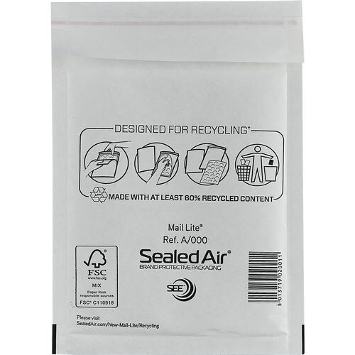 Mail Lite Luftpolster-Versandtaschenn A/000 Weiß Ohne Fenster 110 (B) x 160 (H) mm Abziehstreifen 79 g/m² 100 Stück