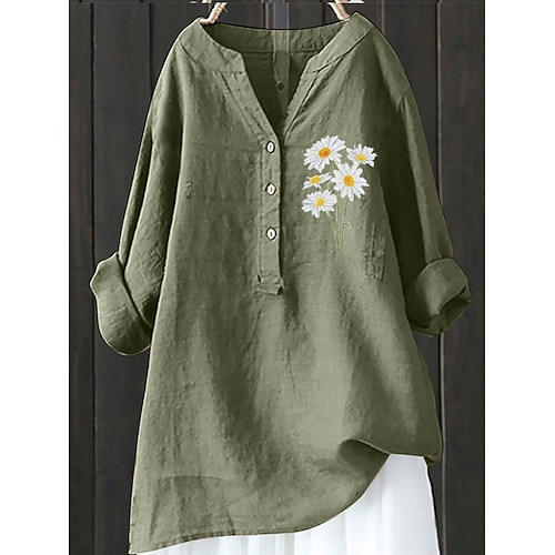 Per donna Camicia Camicie ispirate al lino Manica Lunga Collo Alto Bianco Verde Beige Primavera Autunno