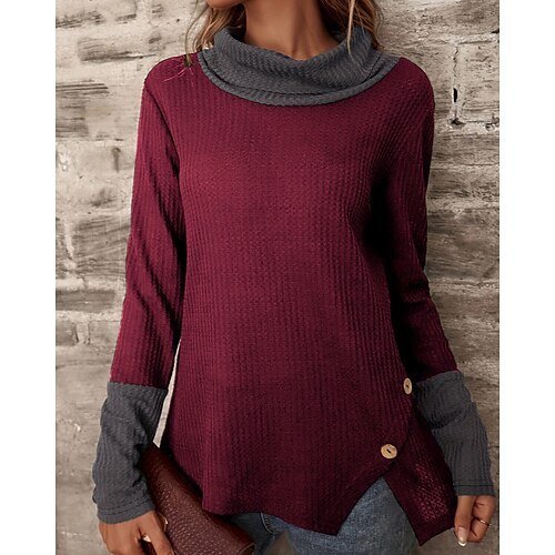 Per donna Felpa Maglione Streetwear Casual Blocco di colori Collo alto Patchwork Lavorato a maglia Spacco Manica Lunga Top Regolari Maglia Quotidiano Ferie Uscire Nero Vino Primavera Autunno