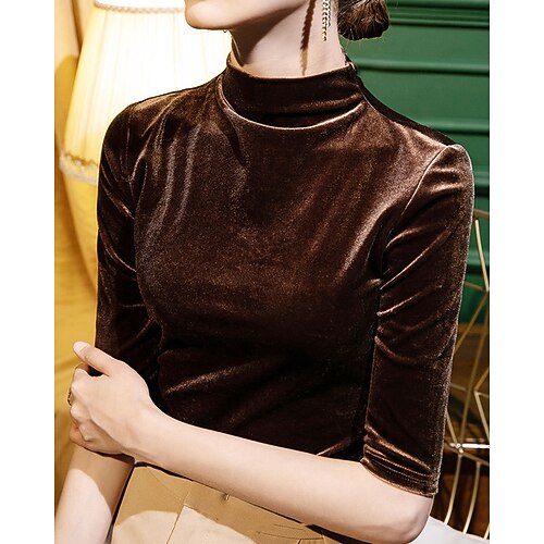 Per donna Velluto Elegant Elegante Blusa Tinta unica Semplice Elegante Essenziale Casual Mezza Manica Collo Alto Top Regolari Quotidiano Ferie Uscire Nero Vino Blu Reale Blu Viola Autunno Inverno