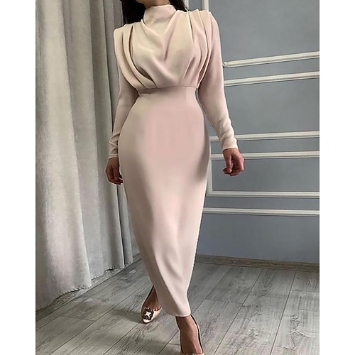Per donna Abito Lungo Maxi Abito Tubino Elegante Moda Moderno Quotidiano Ufficio Ferie Vestibilità regolare Semplice Manica Lunga Collo Alto Collo alla coreana Nero Vino Verde Grigio Primavera