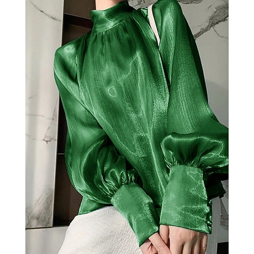 Per donna Camicia Elegant Raso/Satin Blusa Semplice Vintage Elegante Manica Lunga Collo Alto Top Regolari Ferie Uscire Arricciato Blu Nero Vino Verde Grigio Primavera Autunno