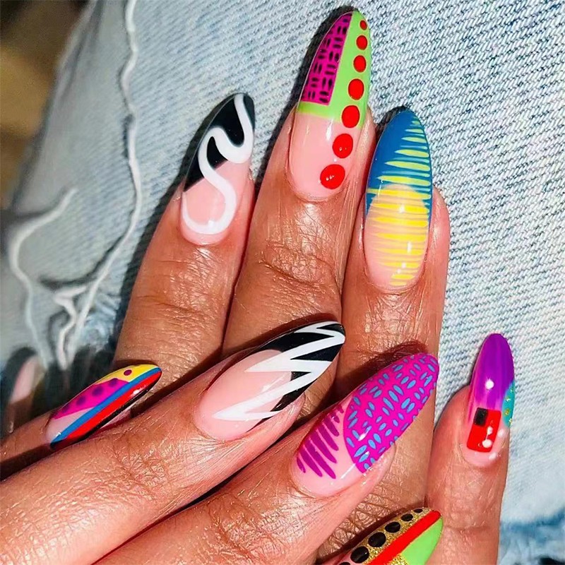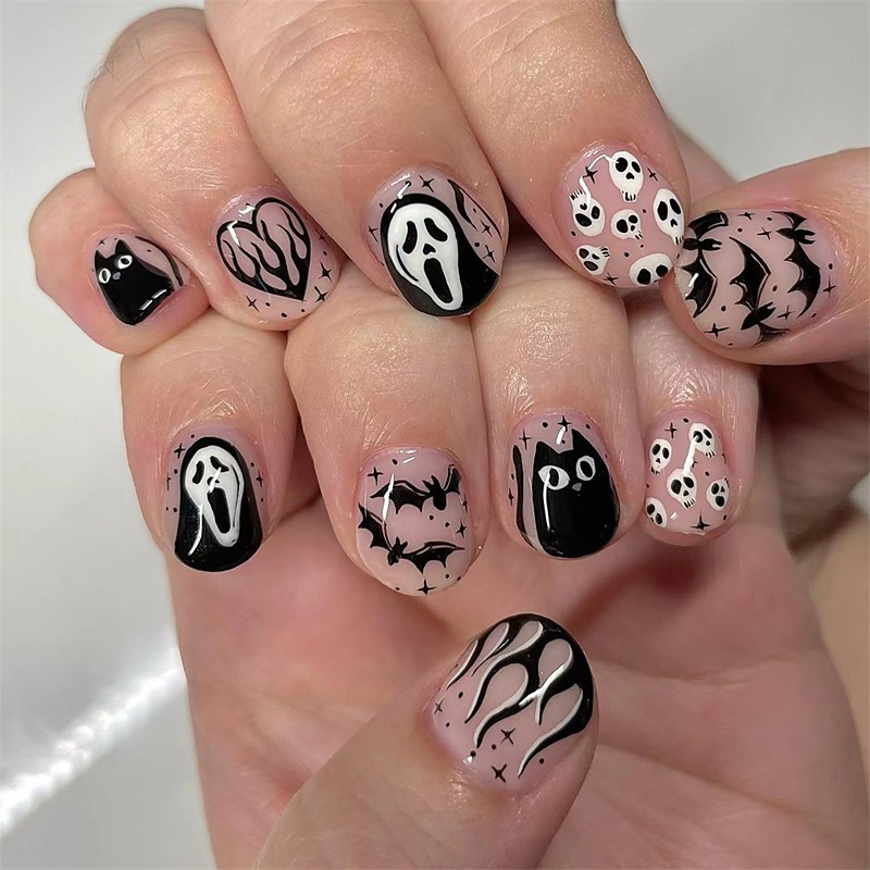 Halloween Press on Nails Medium Almond MABKJLF Spider Charms Fake Nails Red Gradient False Nails with Spider Web Designs Black Matte Acrylic Nails Glossy Glue on Nails for Women Girls 24 Pcs