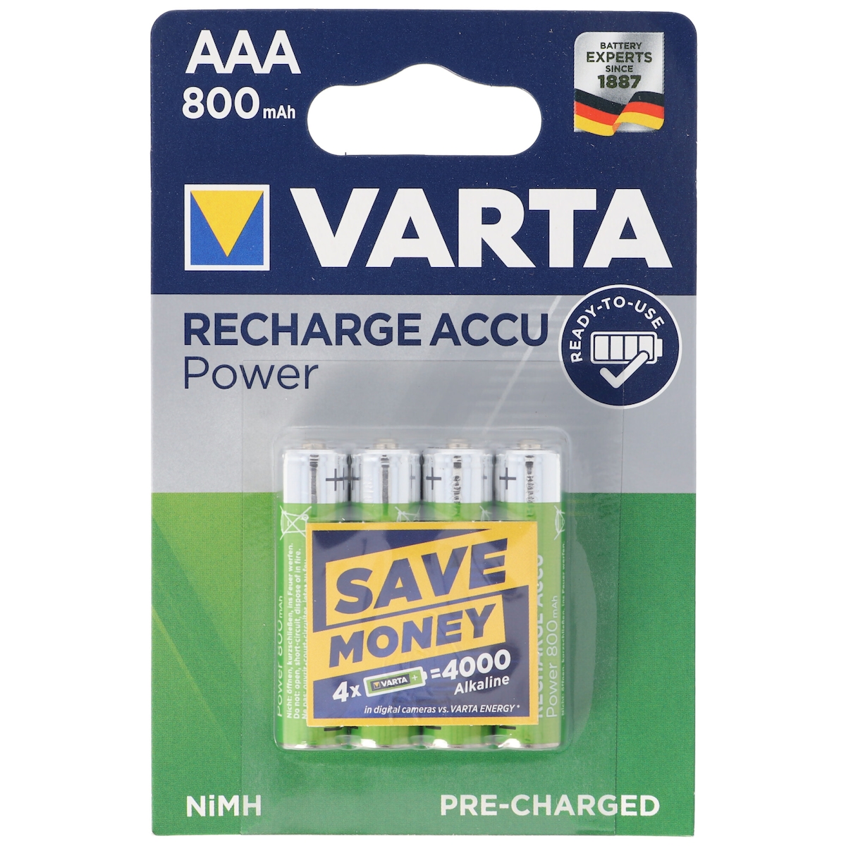Varta -56703B, Wiederaufladbarer Akku, AAA, Nickel-Metallhydrid (NiMH), 1,2 V, 4 Stück(e), 800 mAh
