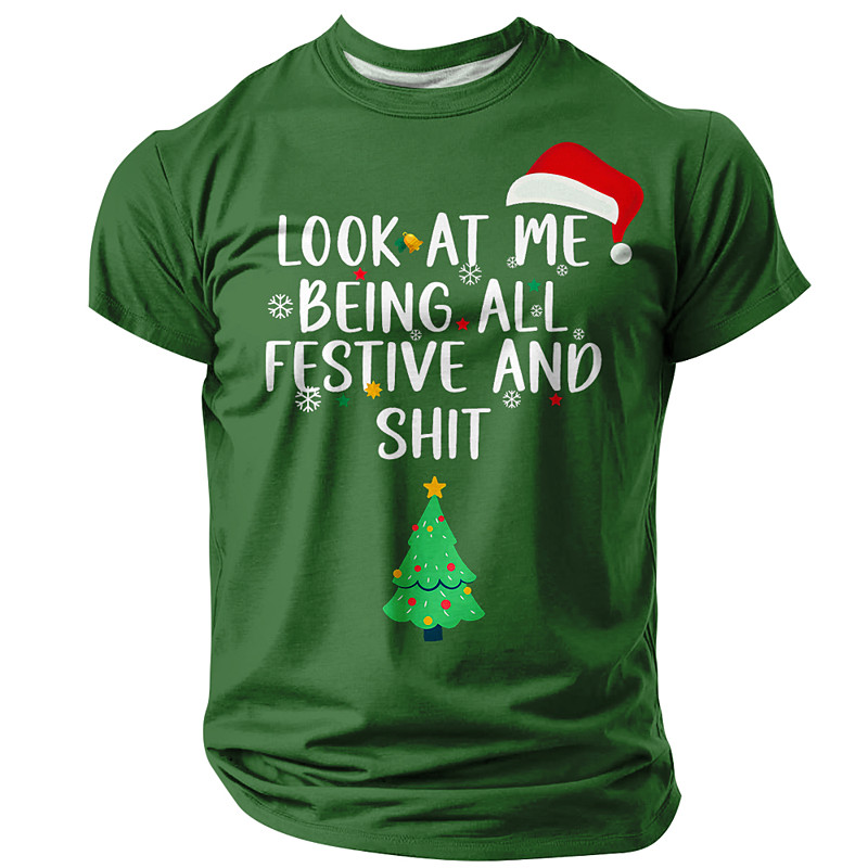 Christmas Funny 'Look at Me Being All Festive and Shit' Men's Short Sleeve Crewneck T-Shirt, Holiday Humor Tee, Gag Gift for Dad Friend